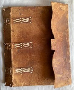 una in pergamena di circa cm 44x31.5, e l'altra in pelle marrone di circa 45x35.5, entrambi secolo 17°, con bandelle [..]