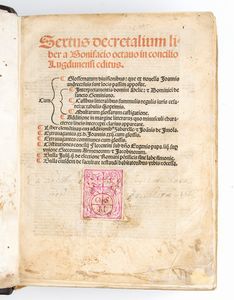 SEXTUS DECRETALIUM LIBER A BONIFACIO OCTAUO IN CONCILIO LUGDUNENSI EDITUS. Venezia [..]