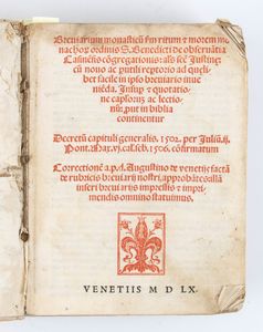 In folio Legatura del XVIII secolo in cartonepressato Frontespizio xilografico impresso in rossi e nero con [..]