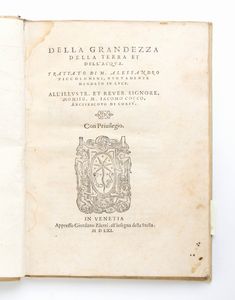 PICCOLOMINI ALESSANDRO. DELLA GRANDEZZA DELLA TERRA ET DELL'ACQUA. VENEZIA 1561