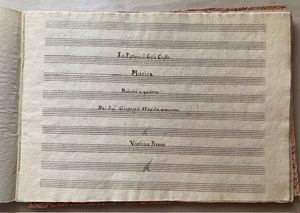 Manoscritto musicale su carta, in folio (foglio 360x250 mm.), legatura coeva in carta rustica, carte di guardia [..]