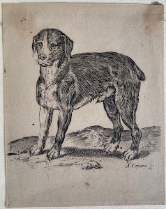 Un cane in piedi rivolto a sinistra. [ca.1582-85]