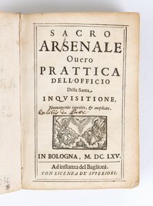MASINI ELISEO. Sacro Arsenale della Santa Inquisizione. Bologna, 1655