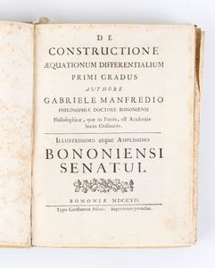 MANFREDI GABRIELE. De constructione aequationum differentialium primi gradus. Bologna [..]