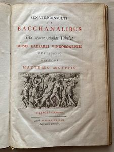 EGIZIO, MATTEO. Senatusconsulti de Bacchanalibus. Napoli, Felice Mosca, 1729.