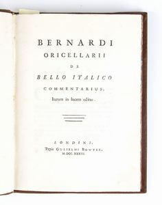 BERNARDO RUCELLAI. De bello italico, De bello pisano. Londra Bowyer 1733