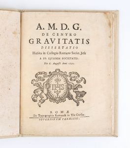RUGGERO BOSCOVICH. DE CENTRO GRAVITATIS DISSERTATIO. Roma ex typographia Komarek [..]
