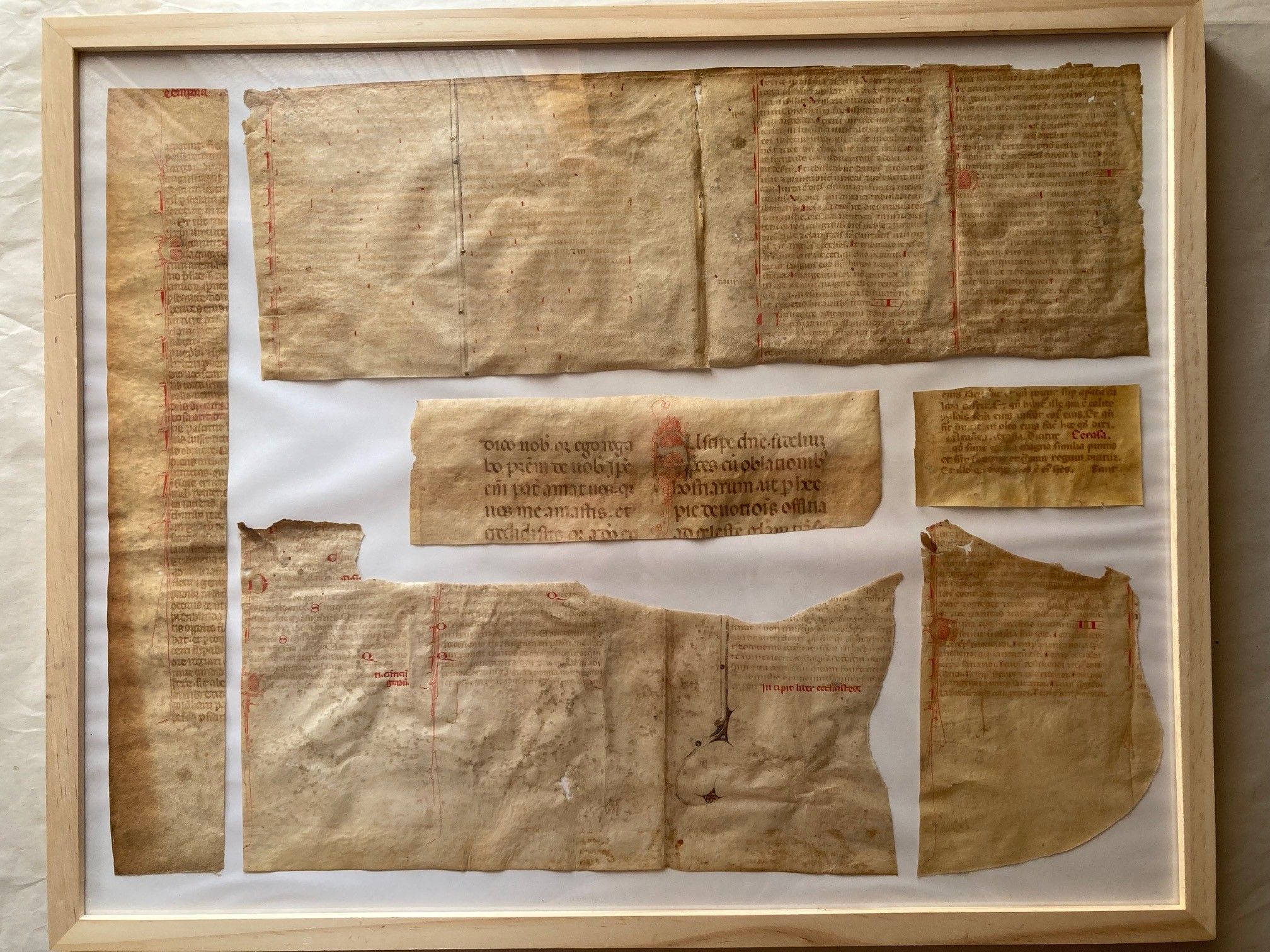 Lotto di frammenti manoscritti medievali incorniciati