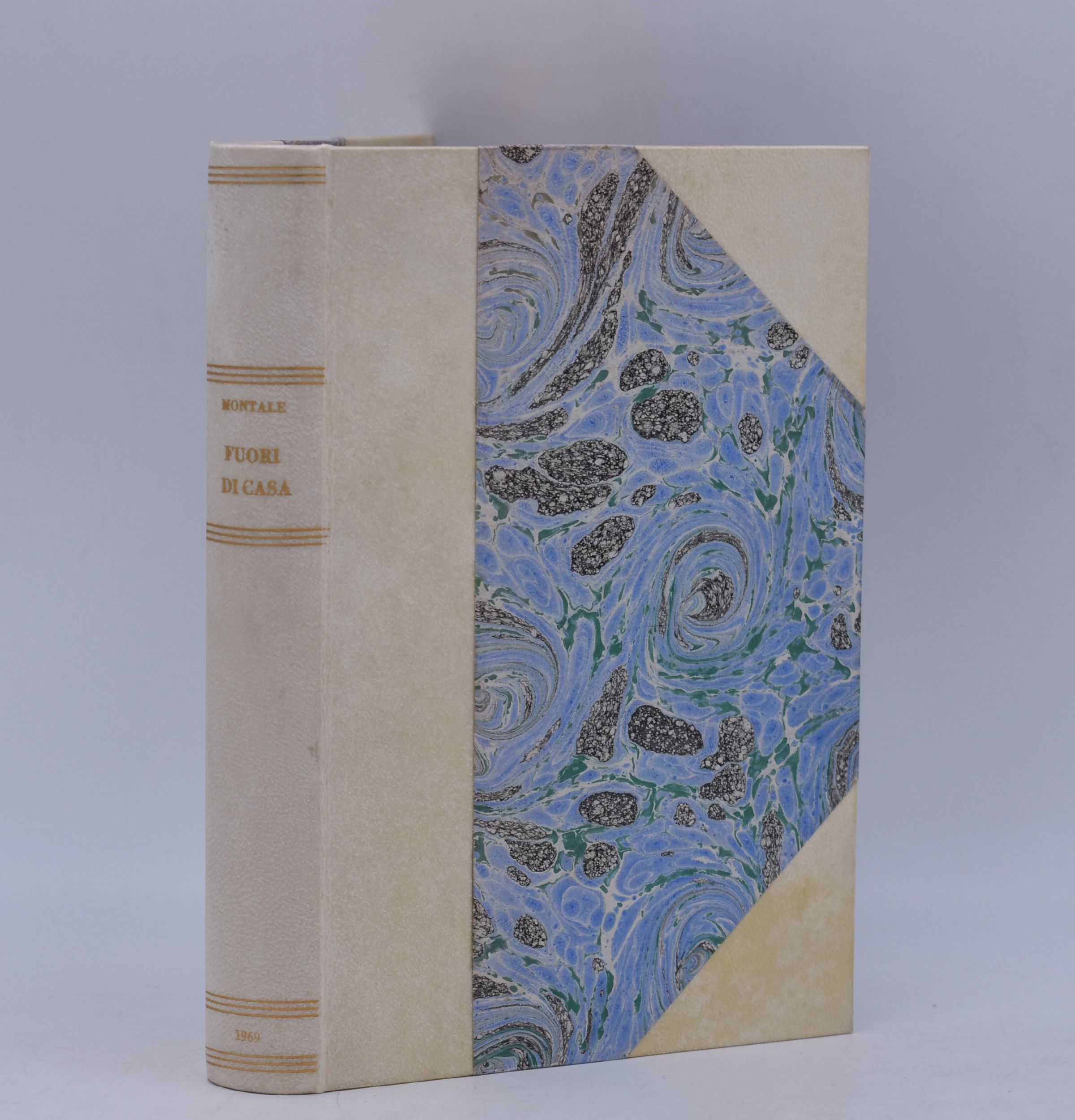 Prima edizione, esemplare con firma autografa dell'A. Con una tav. ill. raffigurante un ritratto di Montale scolpito da Giacomo ManzĂ¹. Legatura in mezza pergamena con angoli, titoli in oro al dorso, taglio dorato, con la brossura conservata.