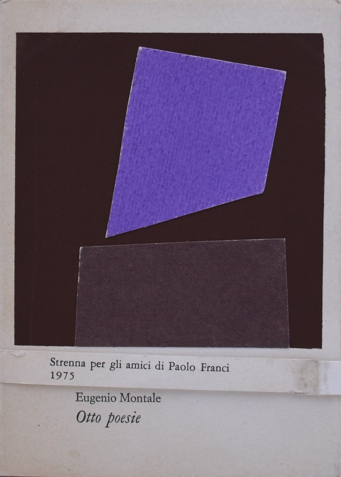 Edizione fuori commercio, tiratura numerata, es. 203/300. Strenna per gli amici di Paolo Franci 1975. Cartonato editoriale con alette, con un collage di Italo Valenti in copertina. L'esemplare conserva la fascetta editoriale.