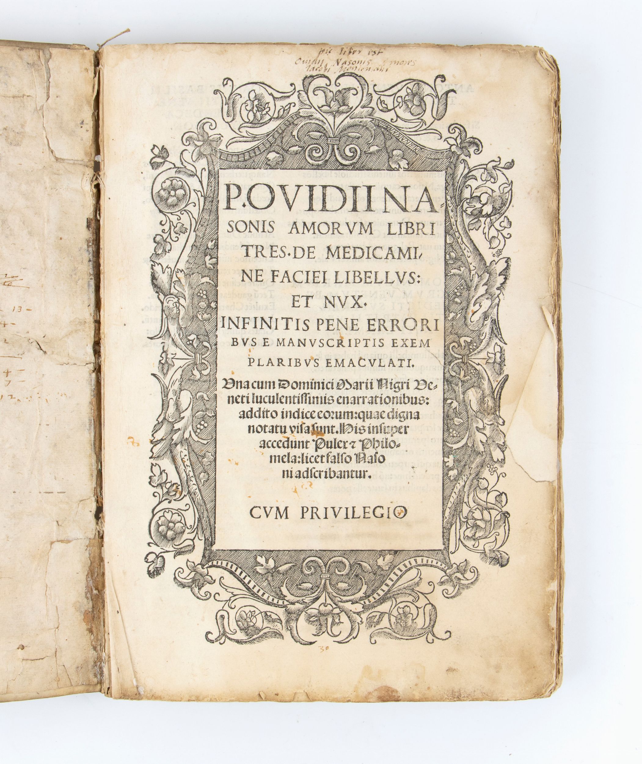 Frontespizio inquadrato entro una bellissima cornice ornata con fogliame e fiori e tre xilografie nel testo, oltre alcune grandi iniziali incise in legno.