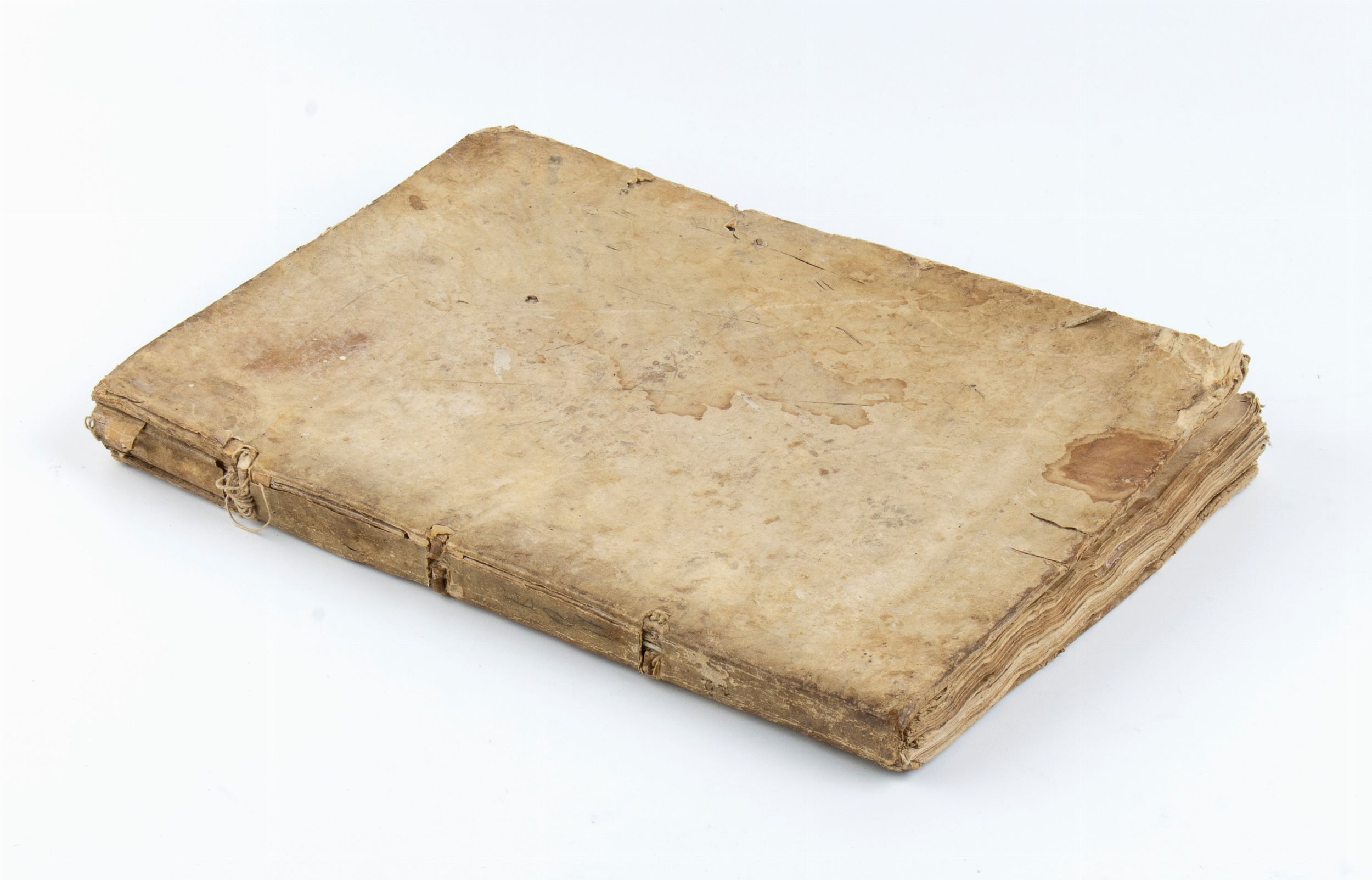 Pergamena coeva logora agli angoli con qualche strappo, dorso allentato . Completo