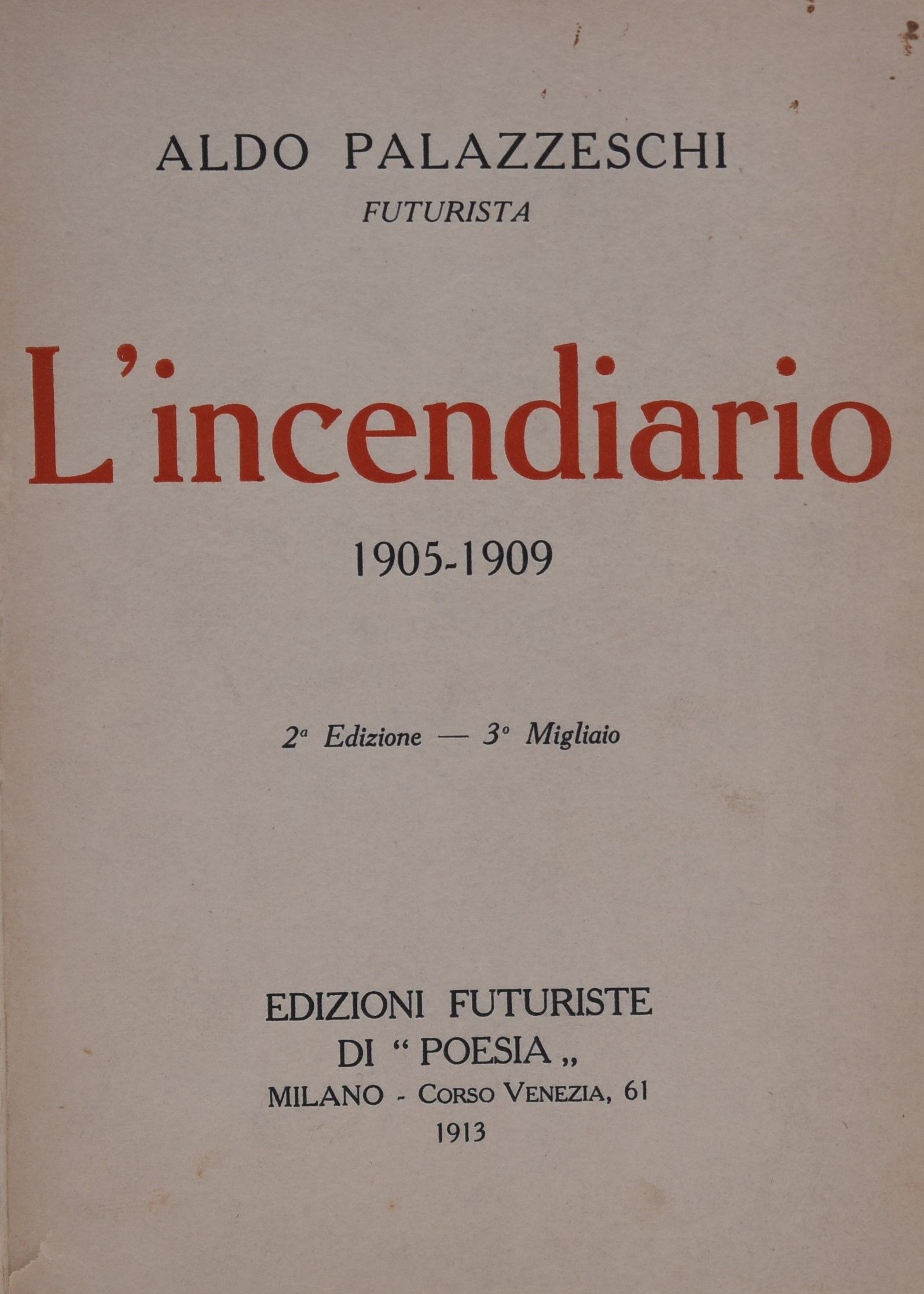 PALAZZESCHI, Aldo. L'INCENDIARIO 1905-1909. 1913.