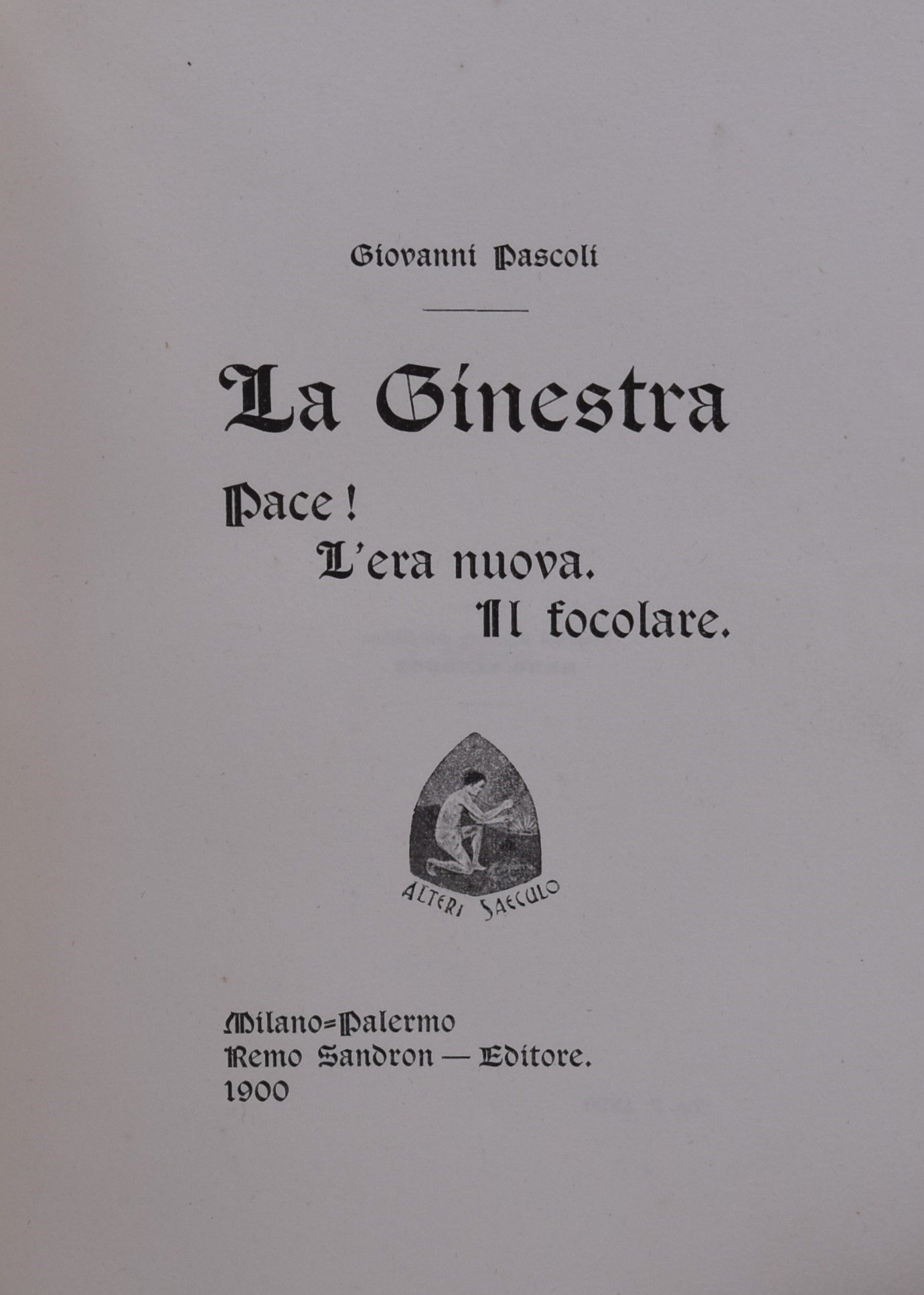 Prima edizione, tiratura limitata (vedi G.-V. pag. 643). Include i testi di due conferenze e di due inni. Esemplare rilegato in piena tela con titoli in oro al dorso.