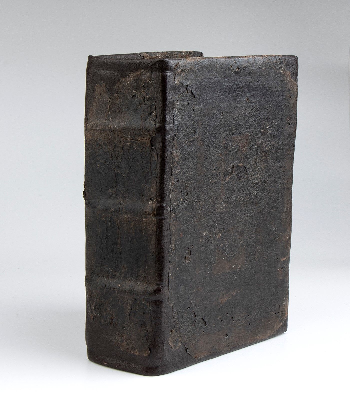 Legatura in piena pelle, dorso con 5 nervi. Stampato in rosso e nero, incisioni xilografiche. Ottimo stato salvo bruniture e ossidazioni su alcune pagine.