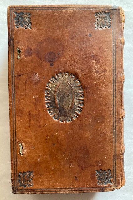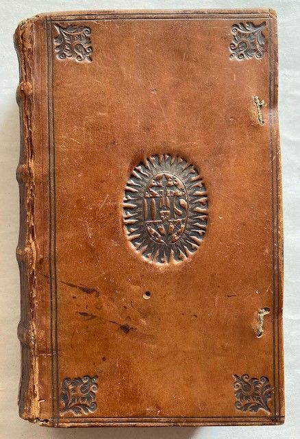 8vo (150x90mm), bell'esemplare in vitello marrone coevo con stemma gesuita timbrato in argento sulla copertura superiore, e l'emblema di Nostra Signora impresso in oro nella copertura inferiore, sottili listelli per incorniciare le tavole, una buona copia (parti superiore e inferiore della costola leggermente logore, e mancanti chiusure sui bordi). Stemma gesuita su frontespizio, pp. [14], 506, [24] of index, last 4 are orig. blanks]. Nota di prima acquisizione e stampa libraria sul frontespizio.