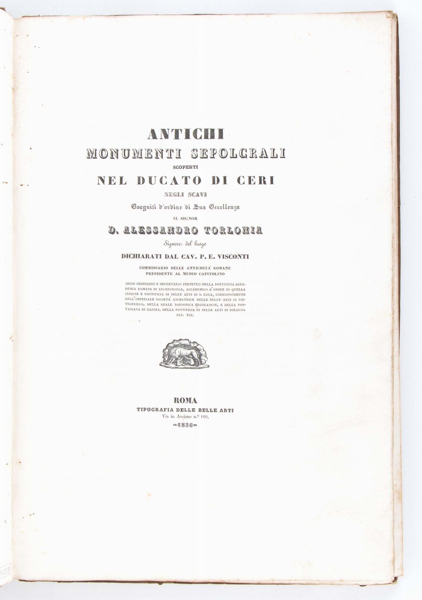 Descrizione delle tombe e dei sarcofagi secondo gli scavi, effettuati presso la casa del principe Alessandro Tolonia (1800-1886), intrapresi nel 1835, dall'archeologo italiano Pietro Ercole Visconti (1803-1880).