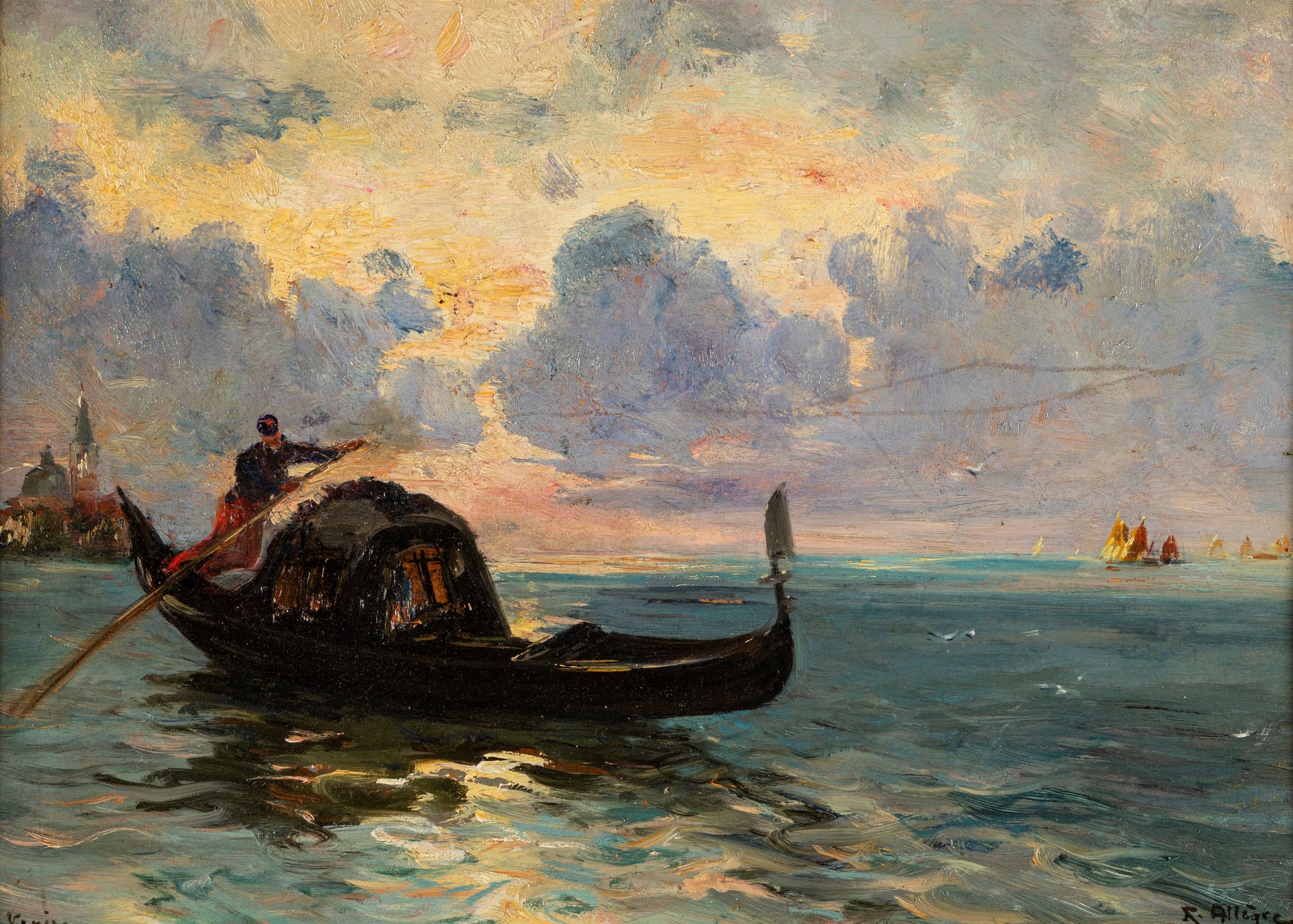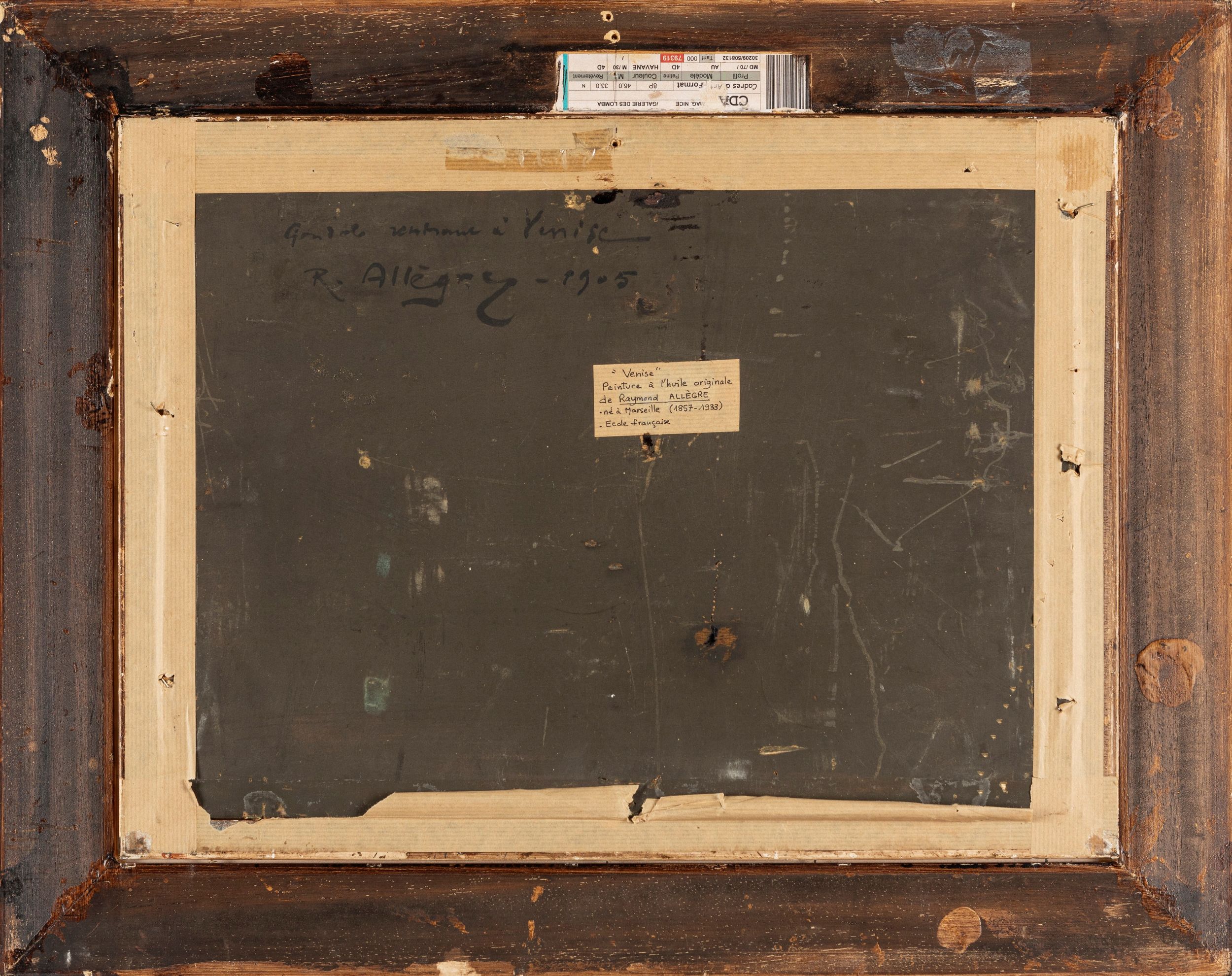 firmato in basso a destra: R. Allegre e locato in basso a sinistra: Veneziaal retro, sul compensato, titolato, firmato e datato 1905