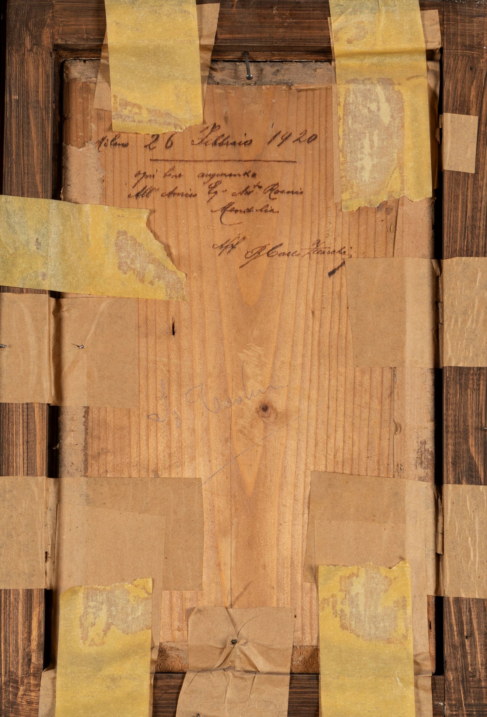 al retro, sulla tavola, reca dedica: Milano 26 febbraio 1920 / ogni bene augurando / all'amico avv.to (...)