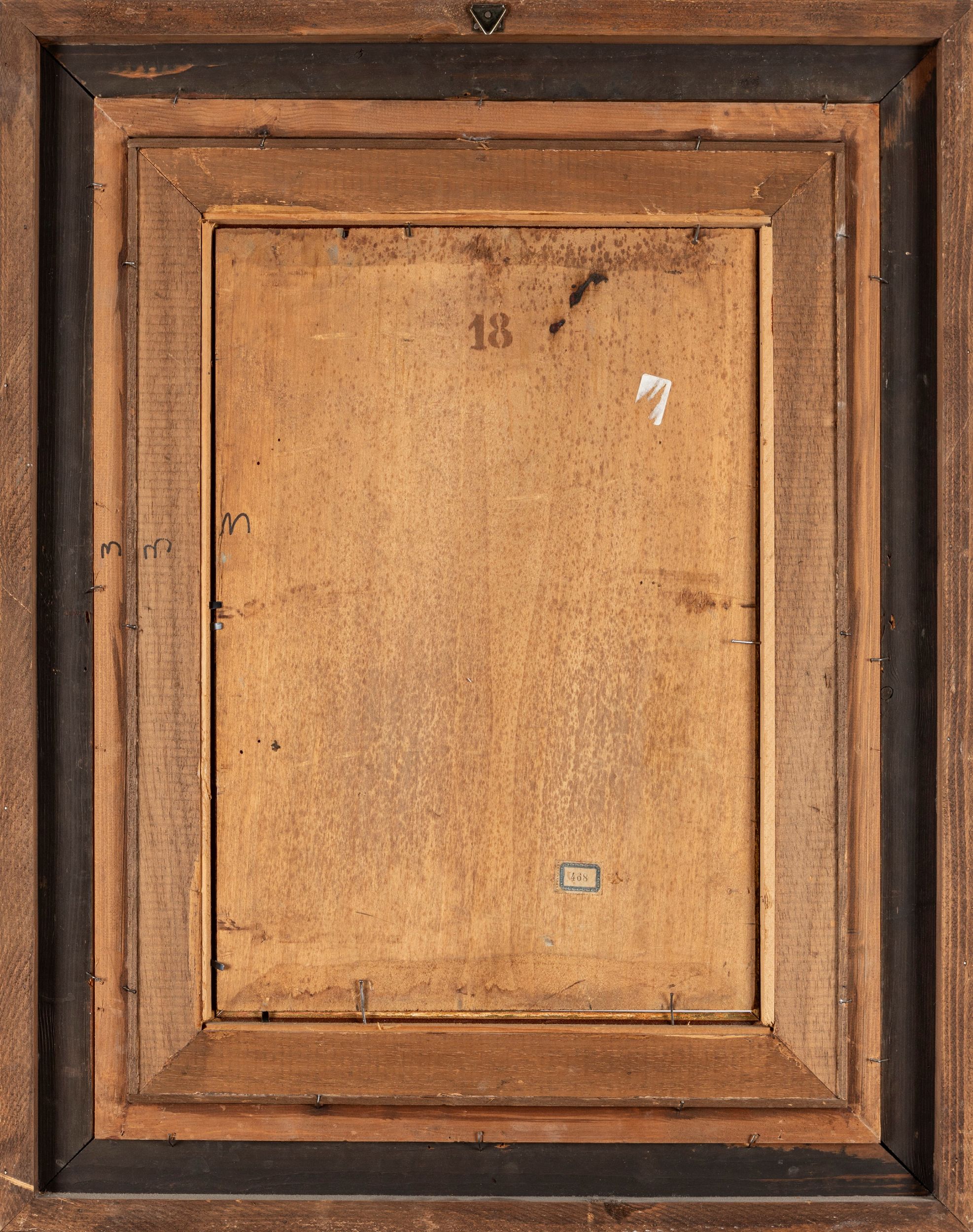 al retro, sulla tavola, etichetta con numero progressivo 468 e timbro con numero 18
