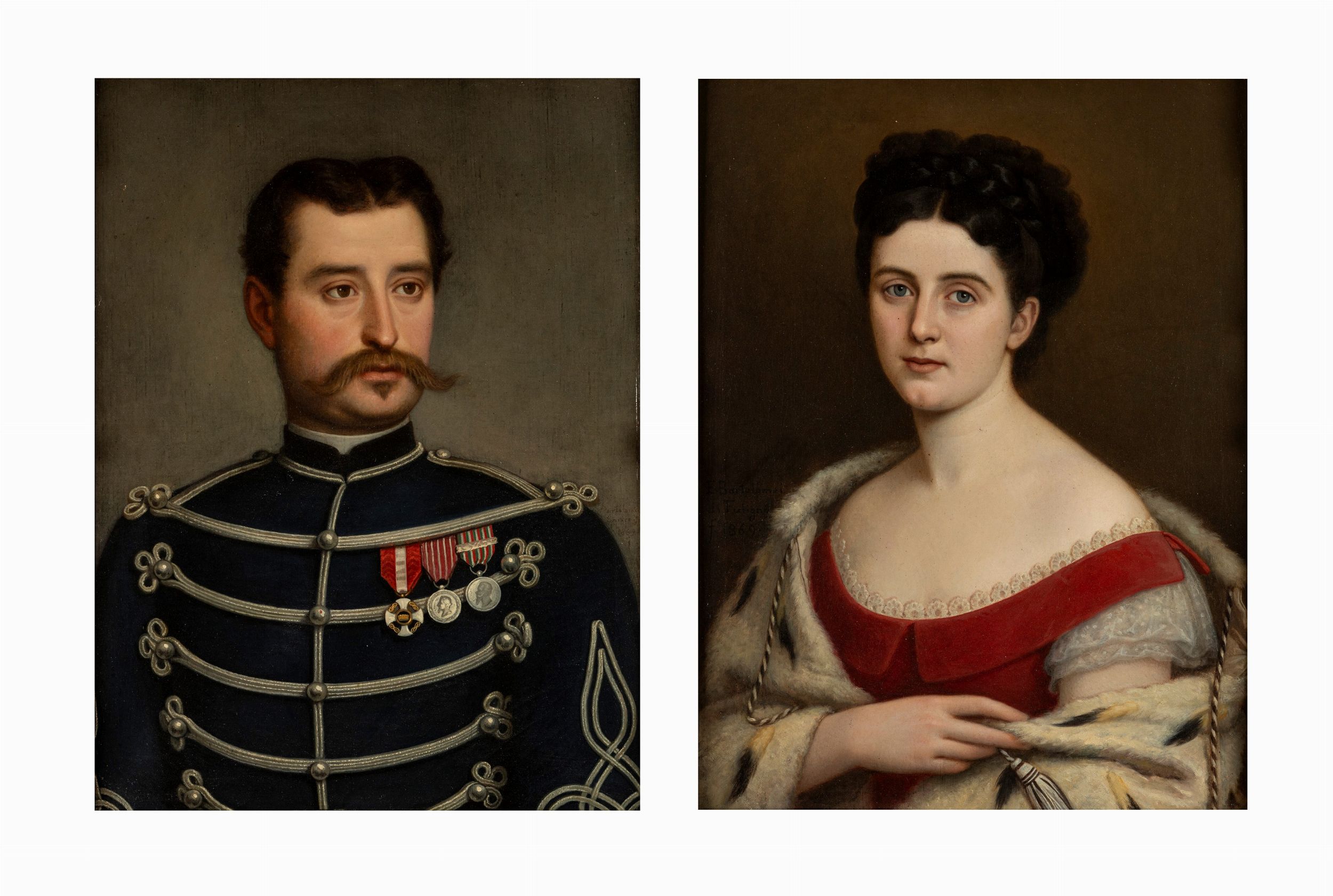 il ritratto maschile firmato e datato a destra: E. Bartolomei / 1869; quello femminile firmato e datato a sinistra: E. Bortolomei / di Fuligno / f. 1869