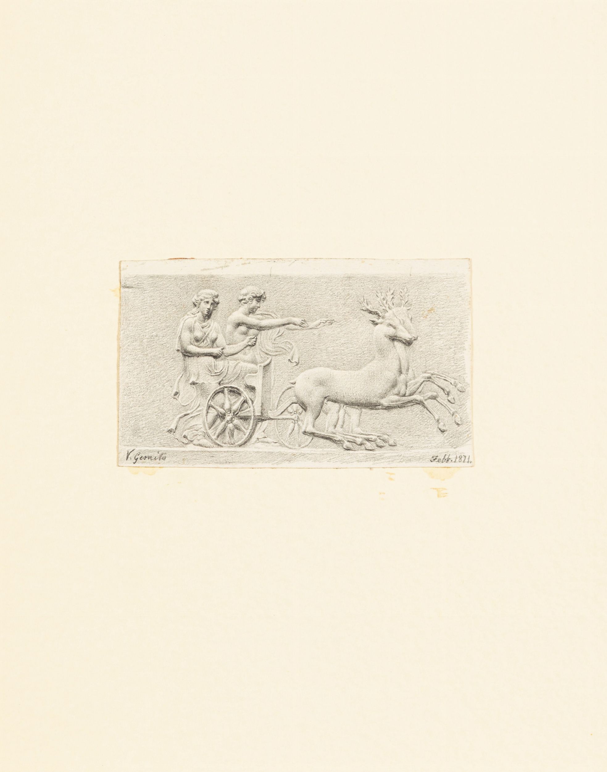 matita su carta applicata a cartoncino, senza cornice, cm 7 x 12