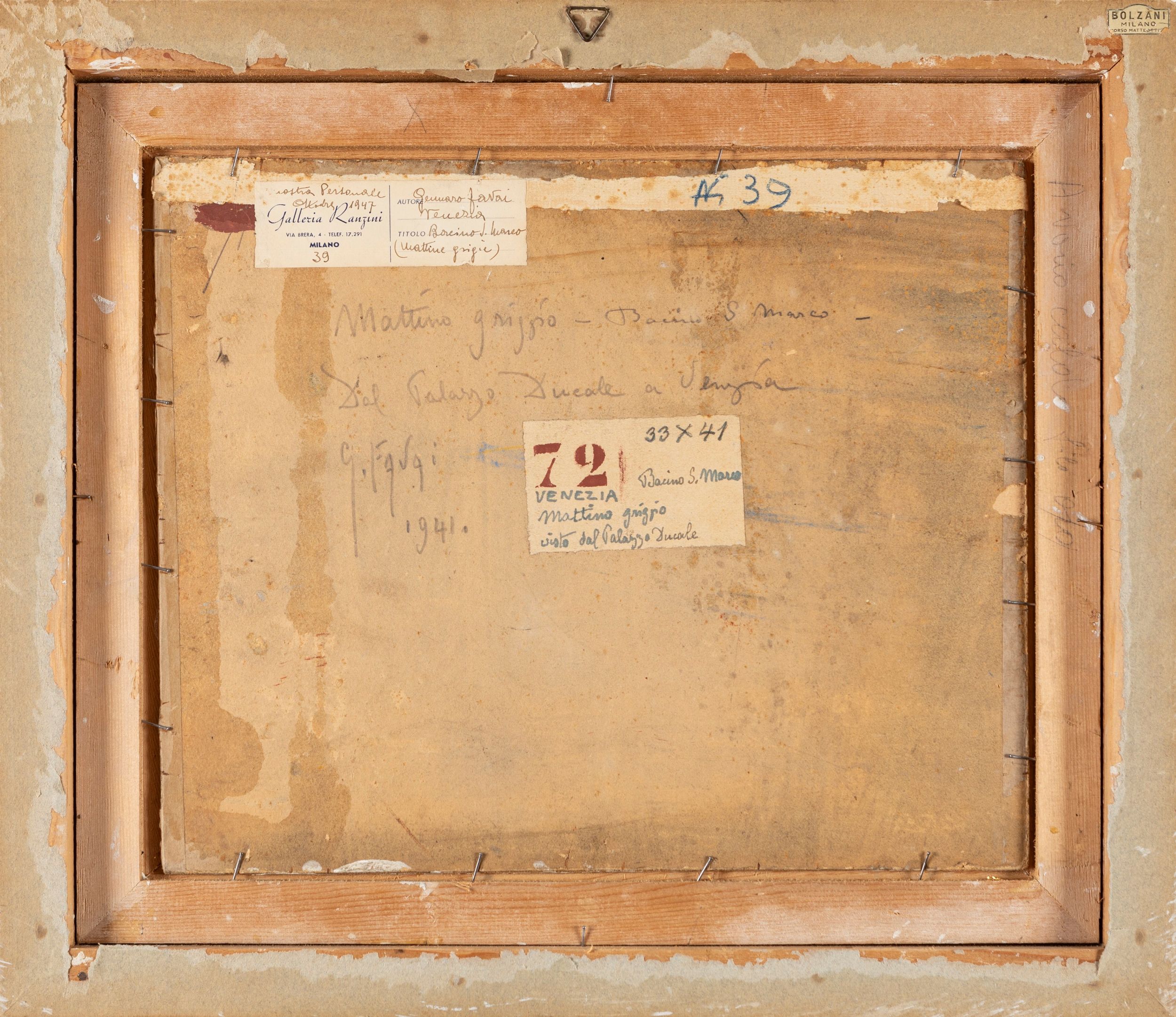 firmato in basso a destra: G. Favaial retro, sul cartone, firmato, titolato e datato 1941; etichetta del pittore con titolo ed etichetta di esposizione della Galleria Ranzini di Milano (Mostra personale, ottobre 1947)