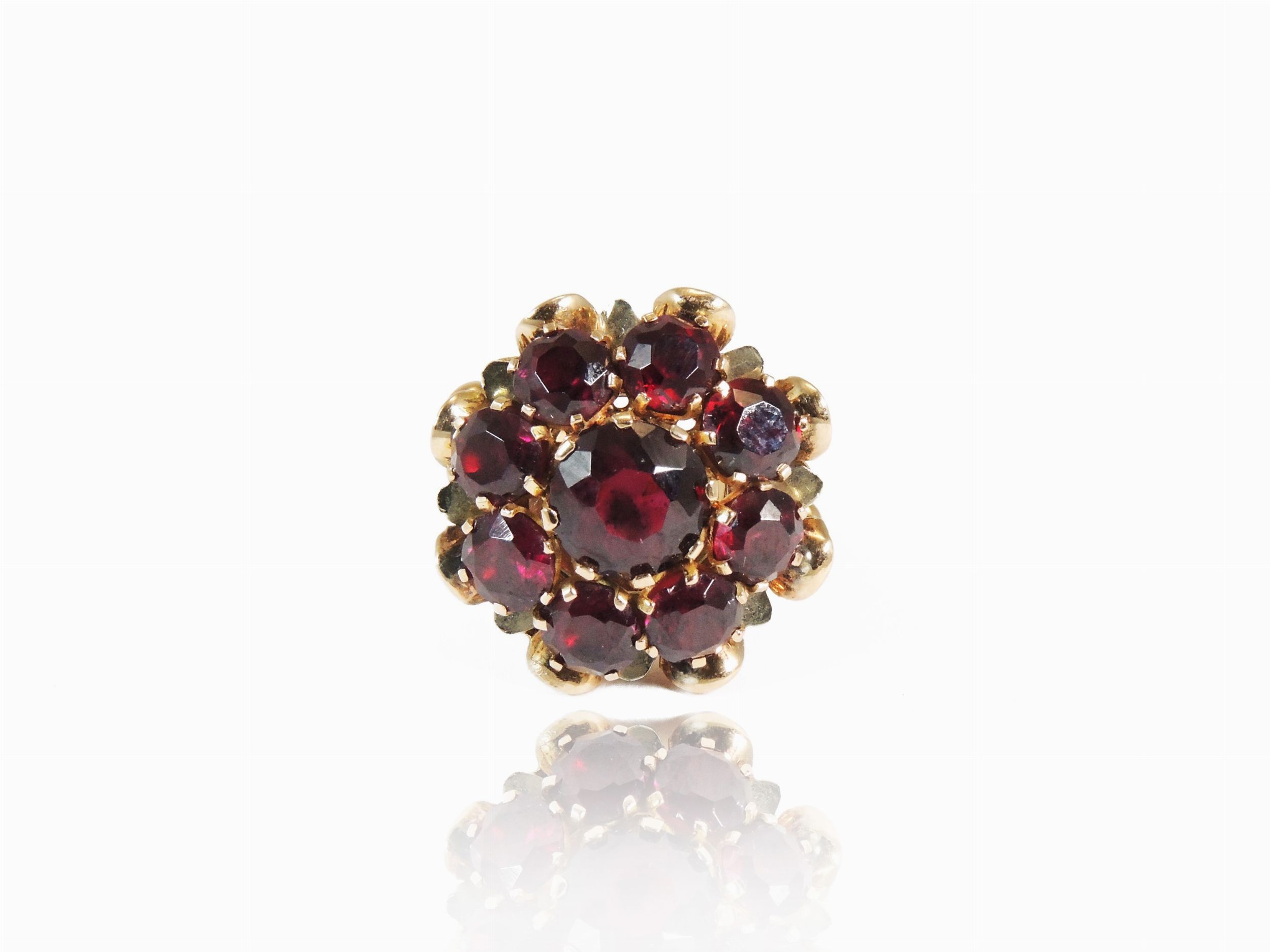 Anello in oro giallo con granati