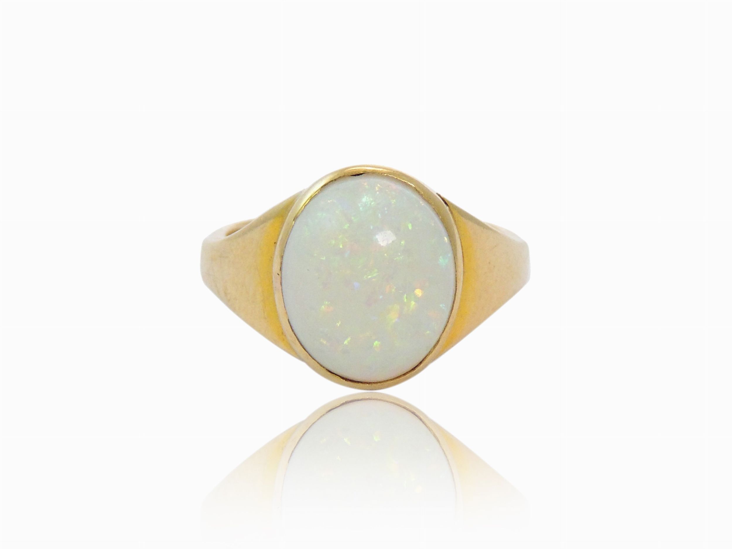 Anello in oro giallo con opale nobile bianco
