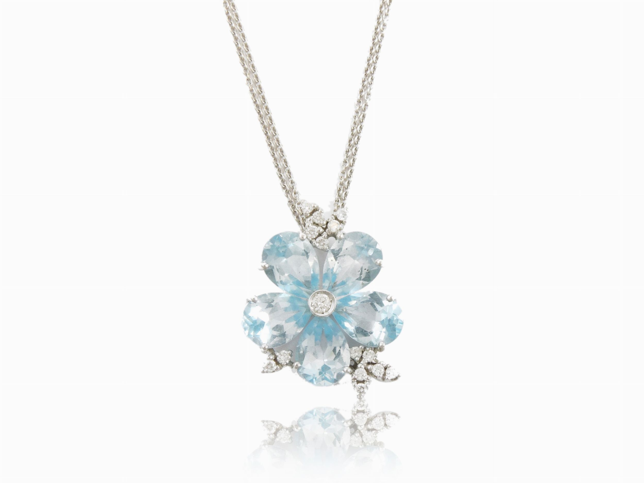Catenina e pendente in oro bianco con diamanti e topazi azzurri