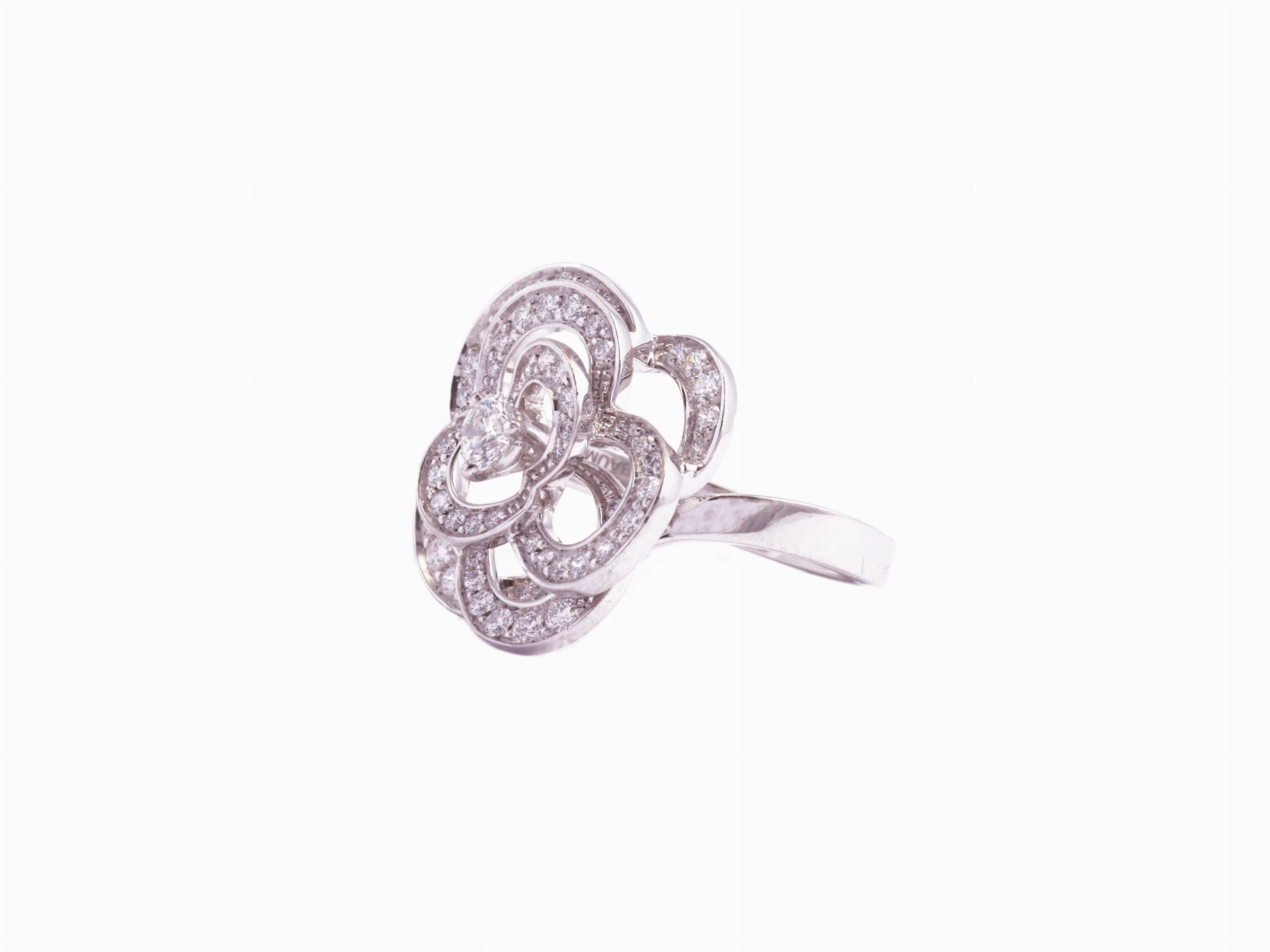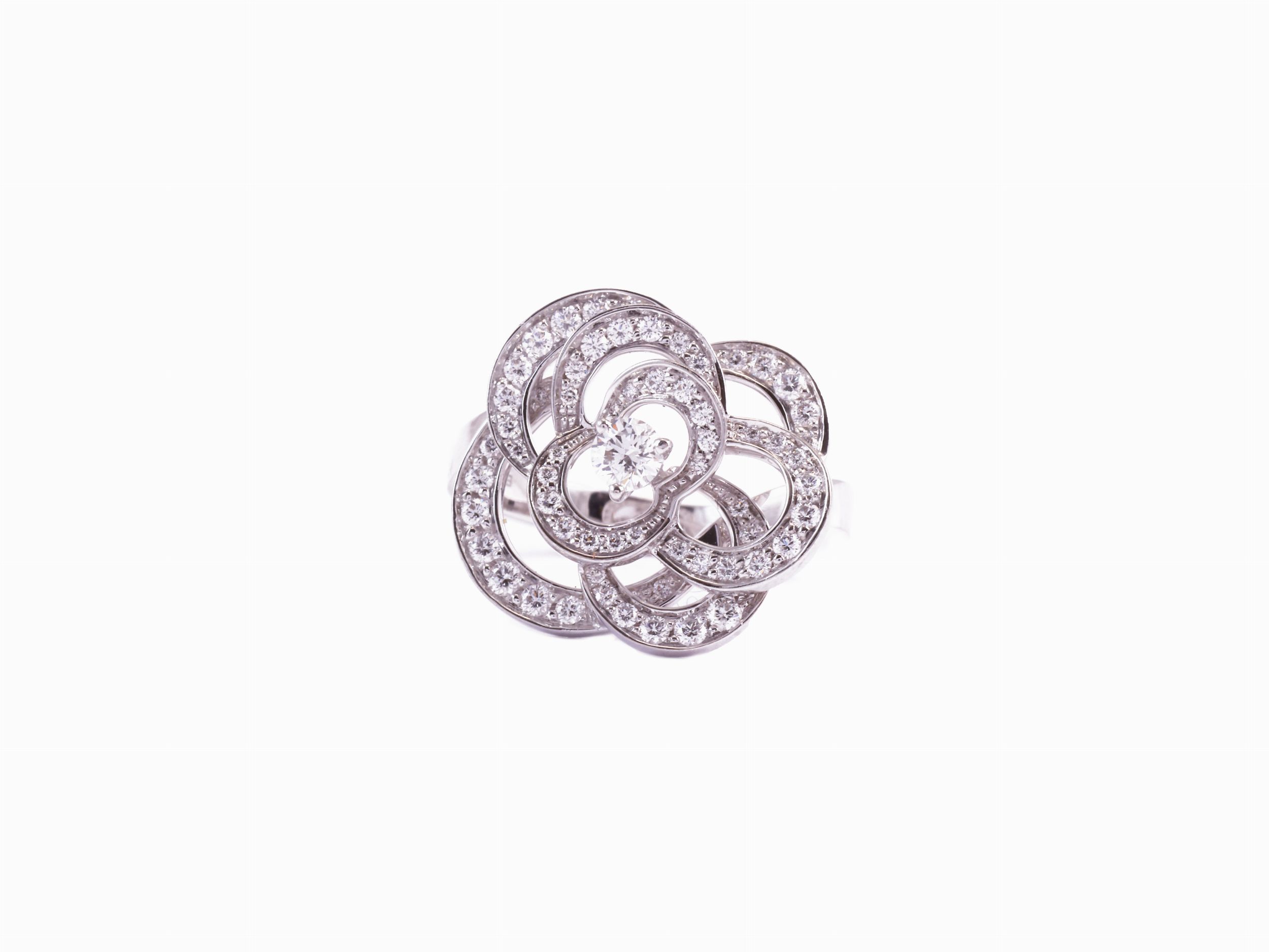 Chanel, anello 'Fil de Camèlia' in oro bianco con diamanti