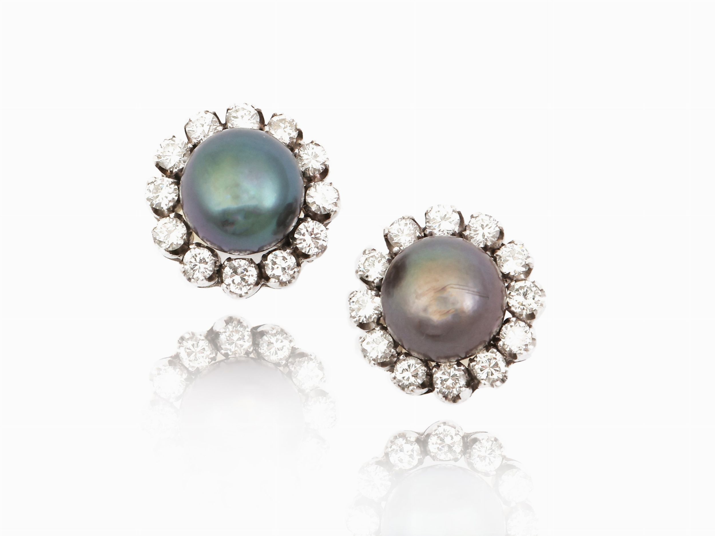 Orecchini in oro bianco con diamanti e perle Tahiti