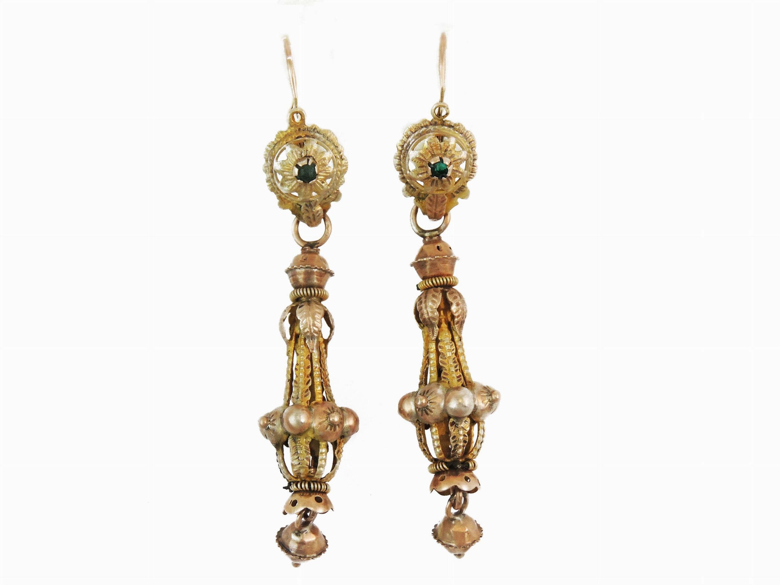 Orecchini pendenti borbonici in oro giallo e rosa a basso titolo con paste vitree [..]