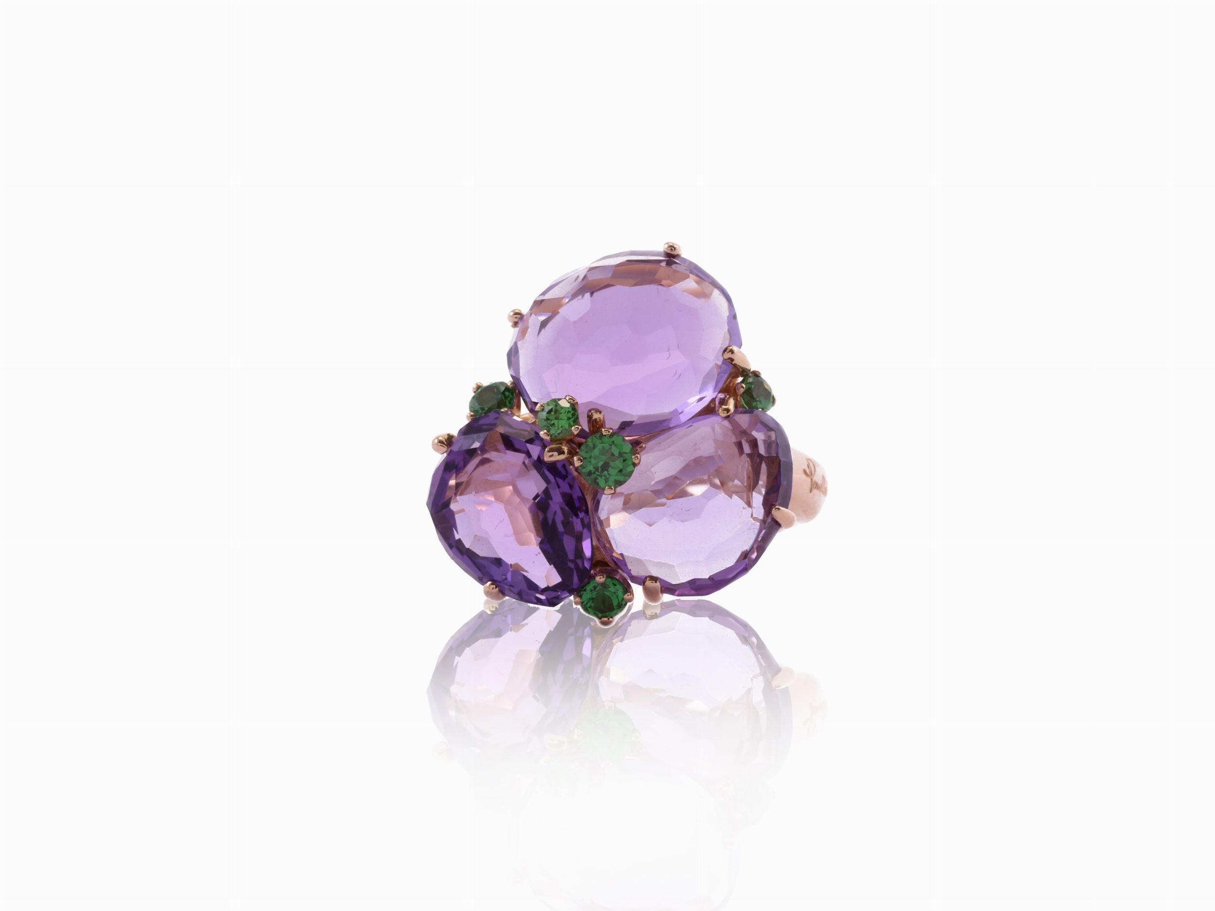 Pomellato, anello 'Bahia' in oro rosa con ametiste e tsavoriti