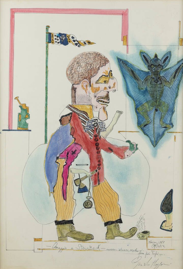 48x34 tecnica mista su carta Opera firmata intitolata localizzata e datata in basso a destra