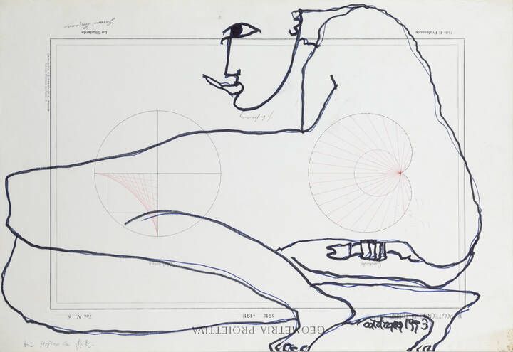 32 5x47 pennarelli su carta del Politecnico di Torino Opera firmata e datata in basso a destra a pennarello e dedicata in basso a sinistra a biro