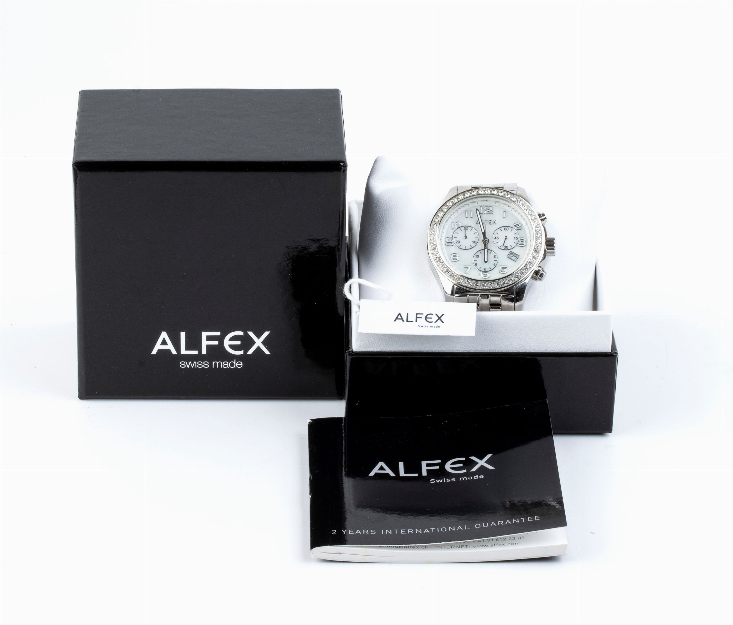cassa e bracciale in acciaio, lunetta con pietre incolori.