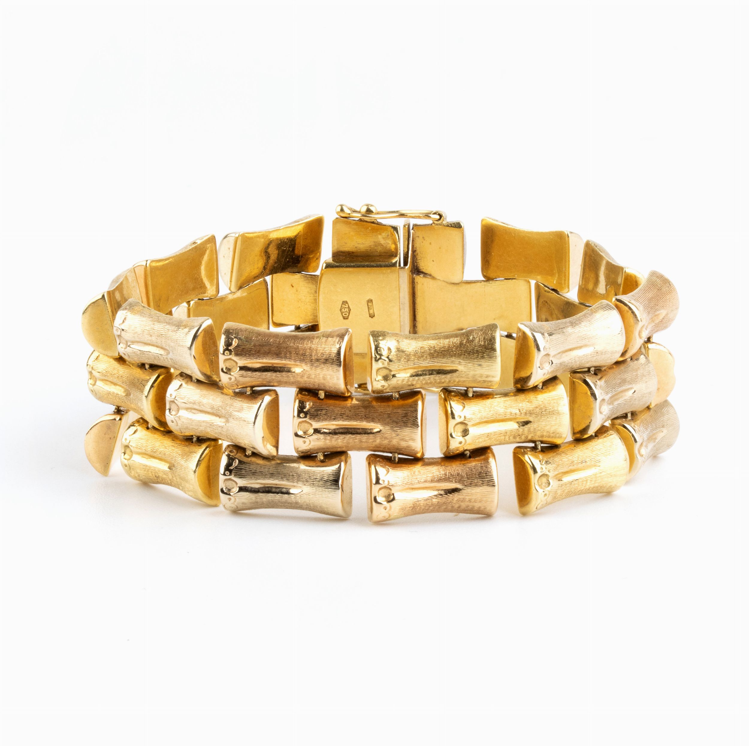 in oro giallo, bianco e rosa 18k.Punzonato 750 - 755 VI. Lunghezza 19,2 cm. Peso 59,3 gr.Stato di conservazione: ***** eccellente.