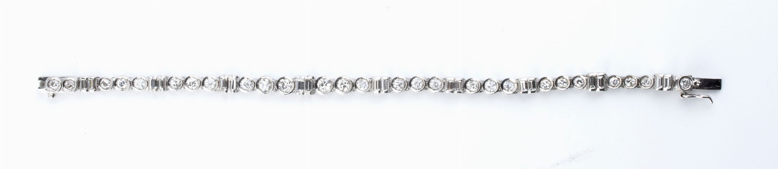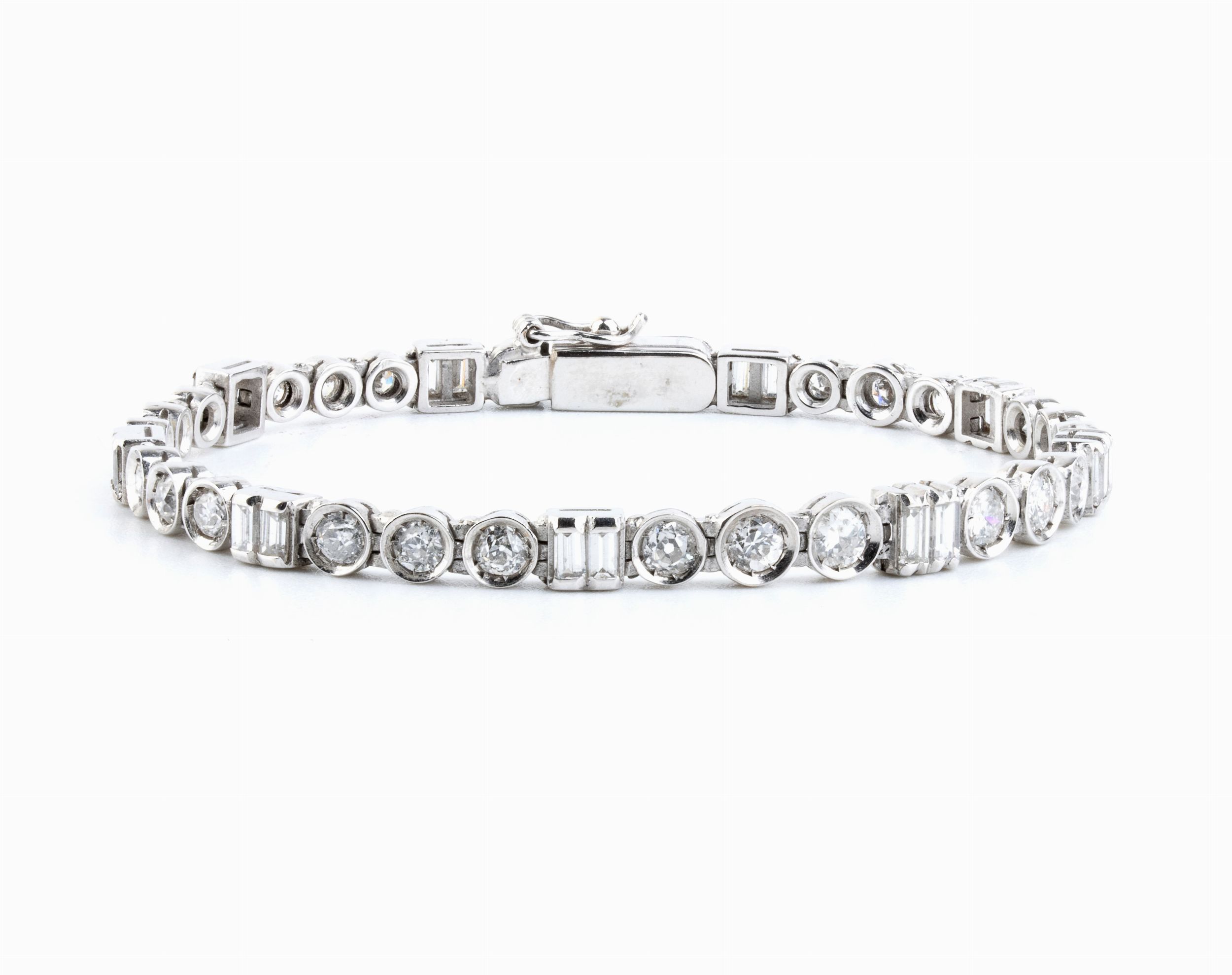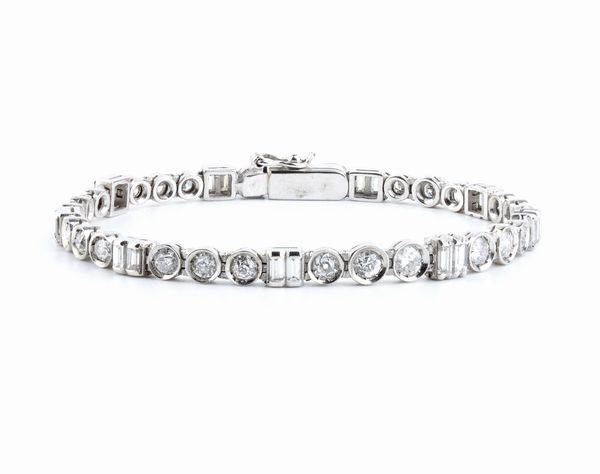 incastonato con una linea di diamanti rotondi e rettangolari.