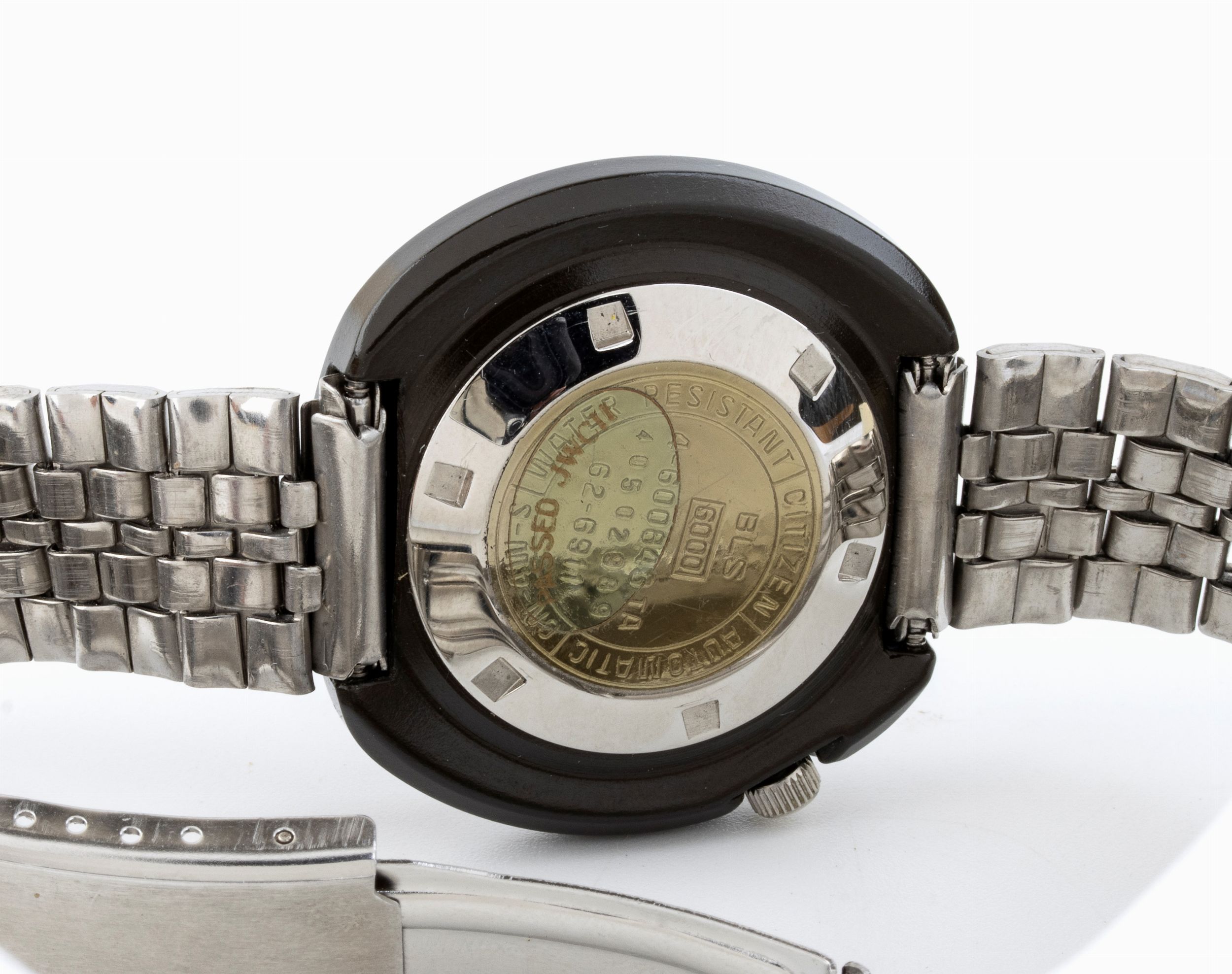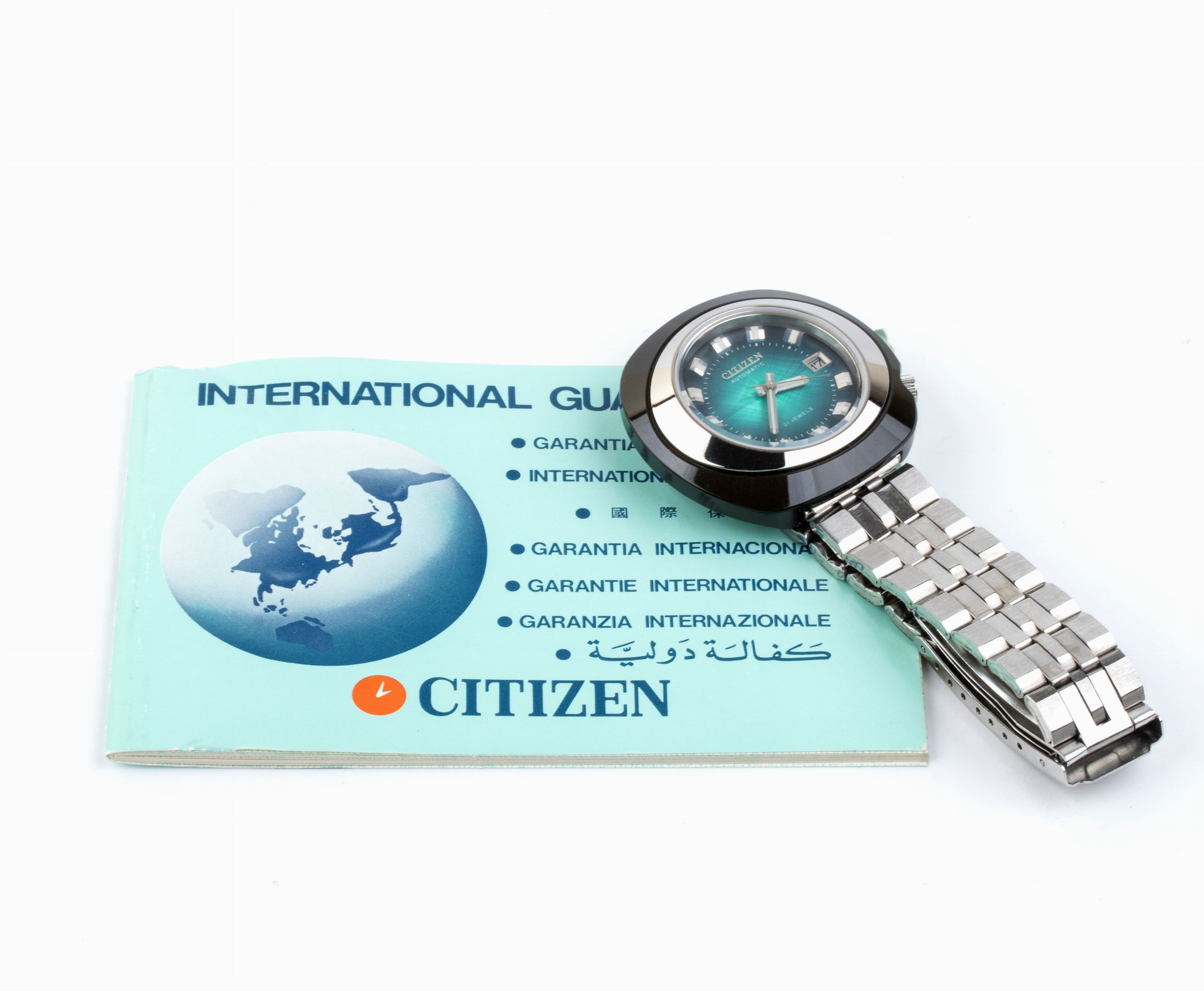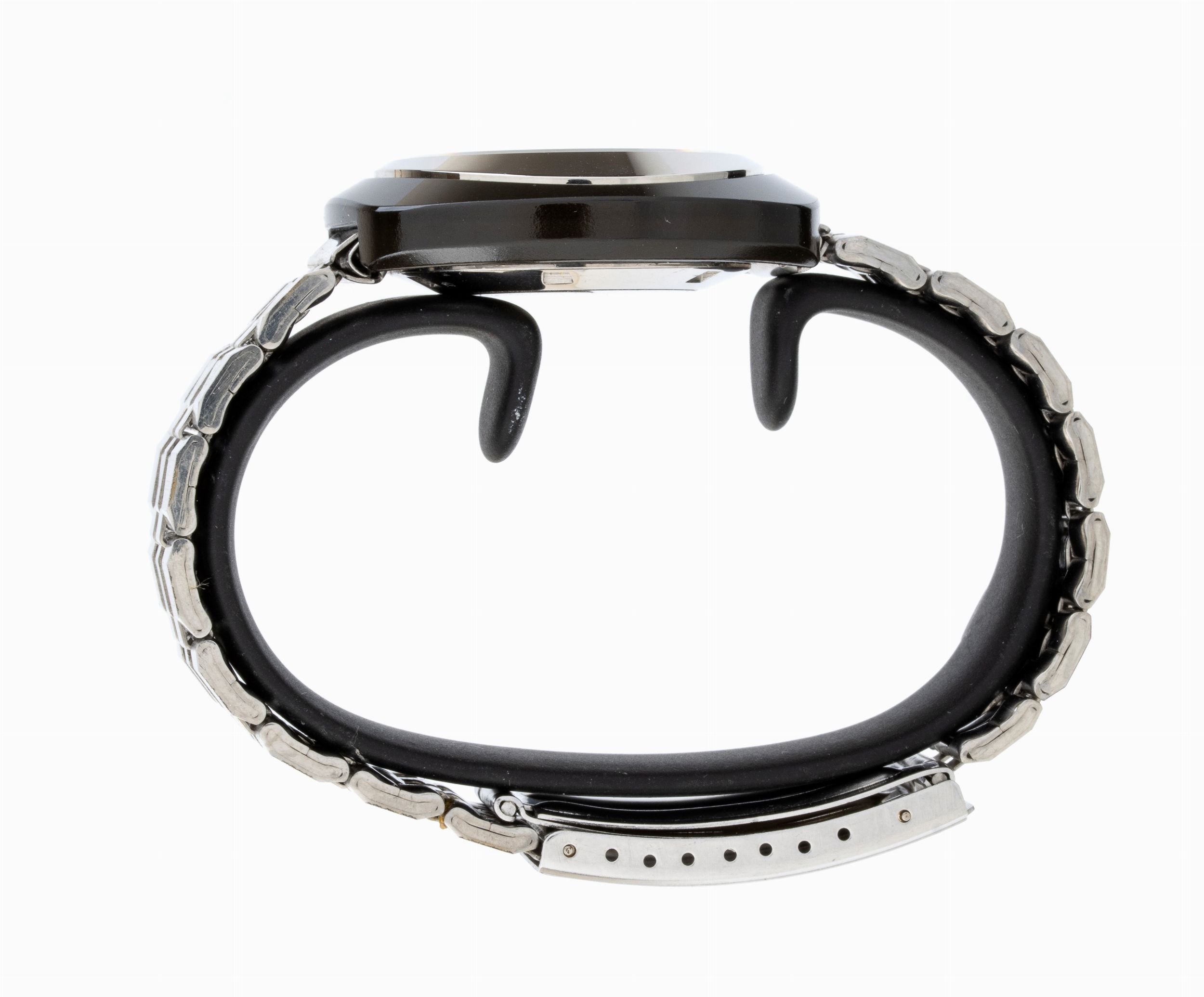 cassa e bracciale in acciaio con lunetta in altro materiale, quadrante verde acqua.