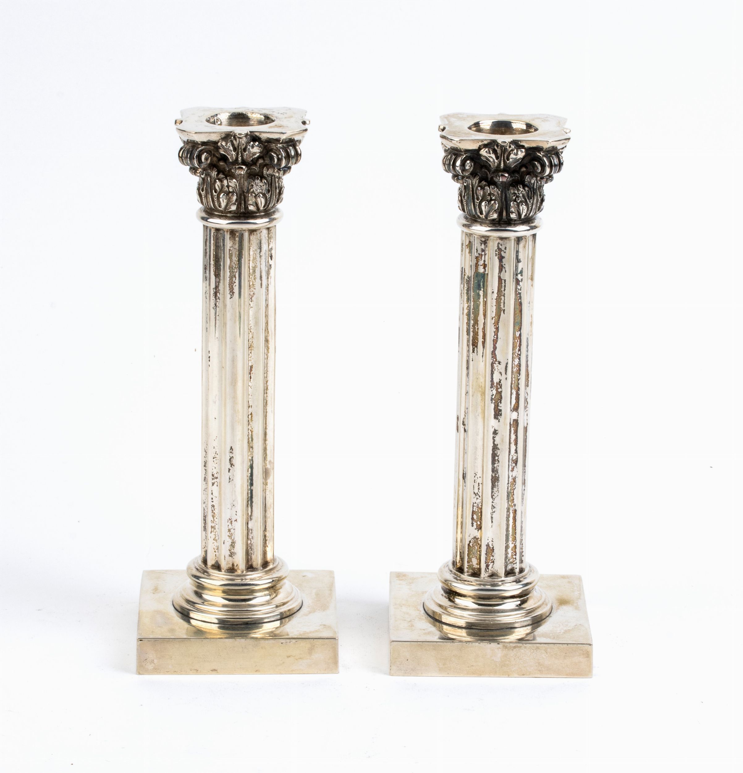 Coppia di candelieri in argento a forma di colonna corinzia - Italia XX secolo