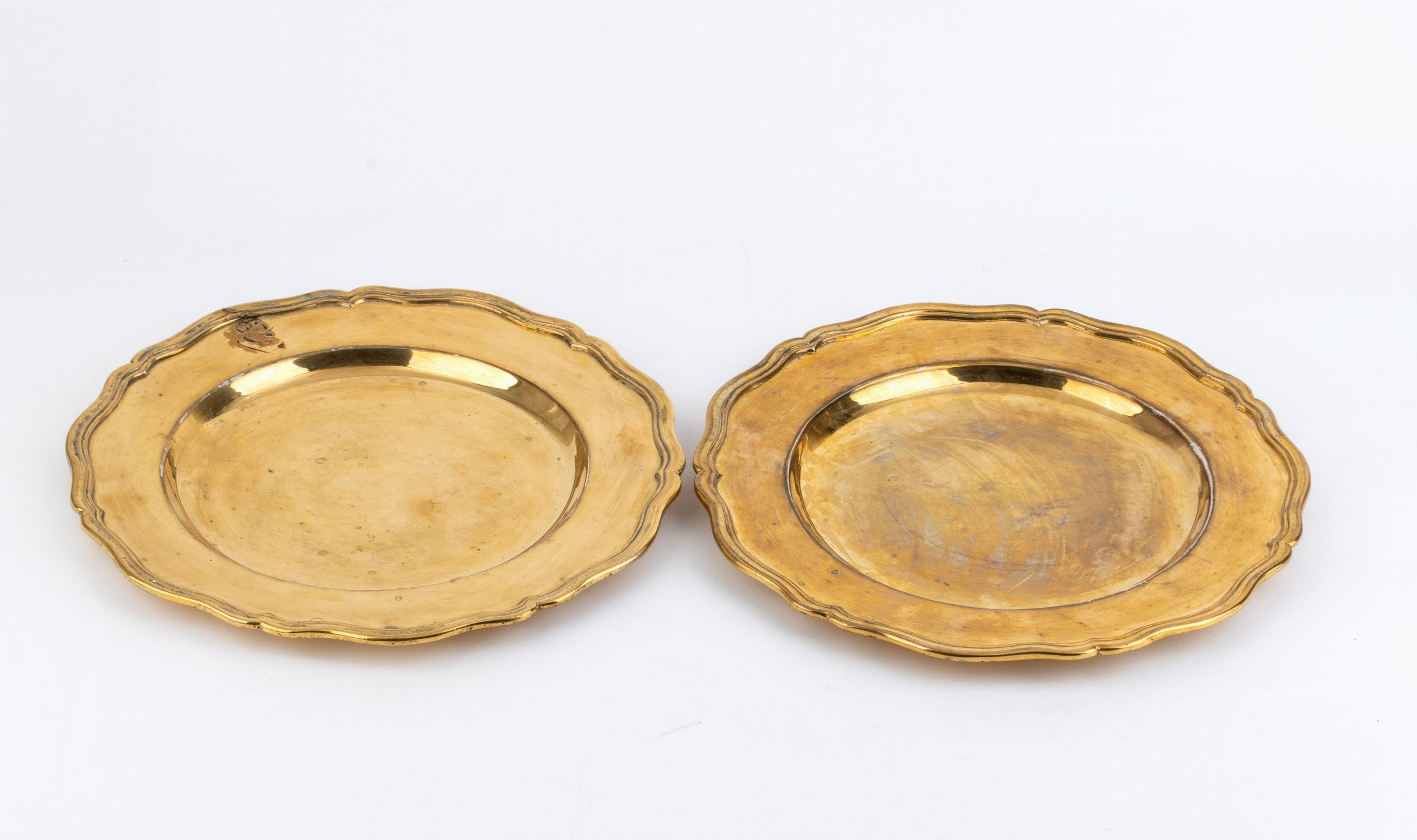Coppia di piatti in argento dorato - Italia, XX secolo