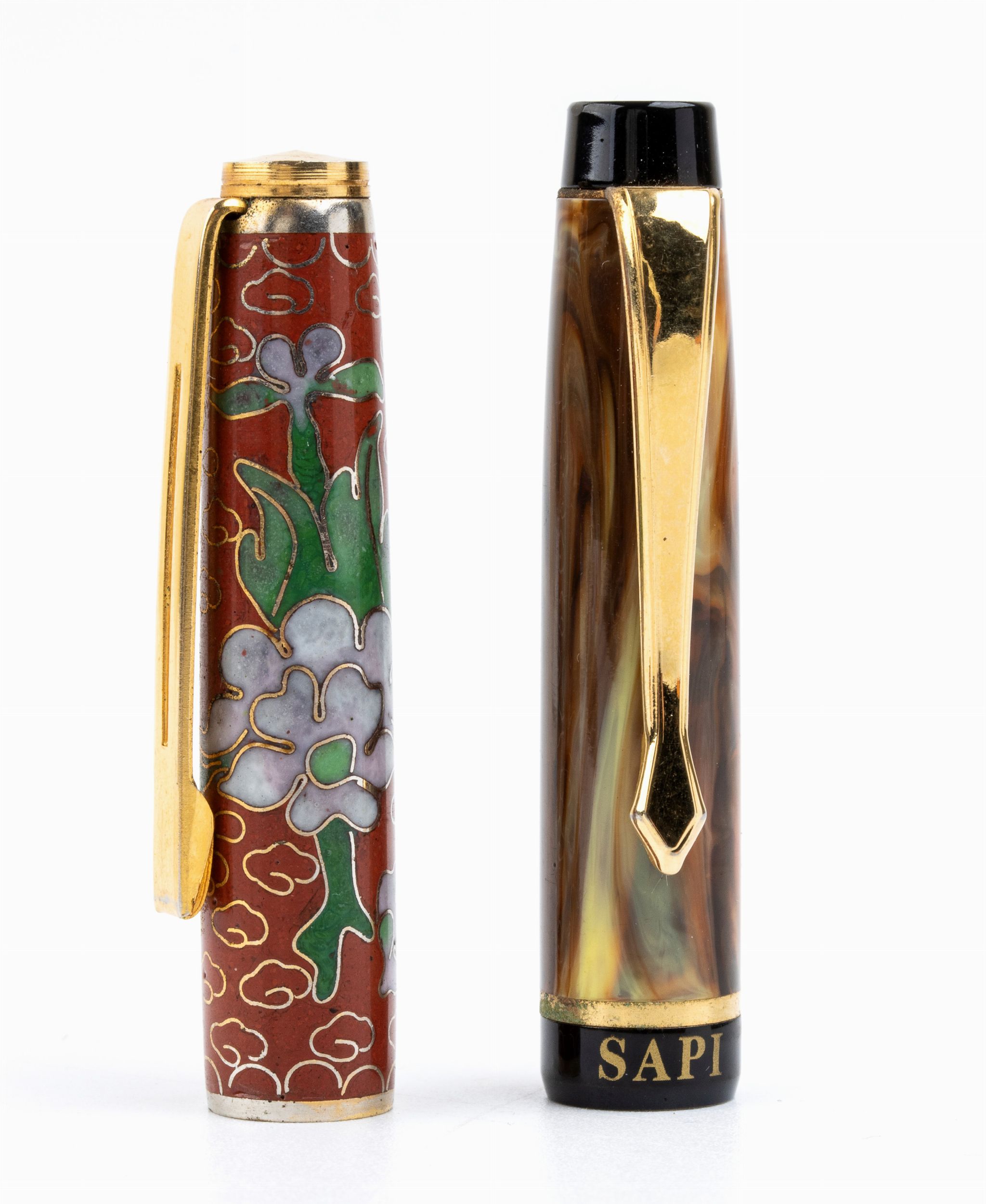 - corpo e cappuccio in smalto cloisonnè con fniture dorate pennino in metallo riportante la dicitura Iridium. Sistema di caricamento a cartuccia. Lunghezza penna 12,7 cm.
