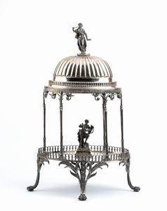 Altezza x Larghezza x Profondità: 24 x 25,5 x 12,5 cm. Peso complessivo lordo 889 gr. argento 800/1000. Punzonati [..]