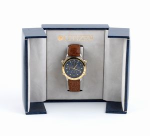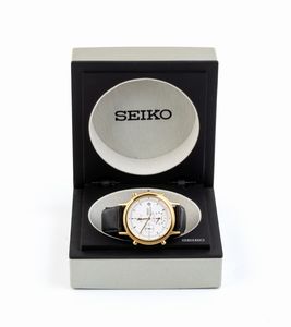 cassa in metallo dorato e cinturino in pelle. Movimento cronografico al quarzo. Completo di scatola SEIKO. Stato [..]