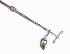 in argento 925/1000, il pendente punzonato Birmingham 1898-99. Lunghezza 40 cm. Peso 34,8 gr. Stato di conservazione: [..]