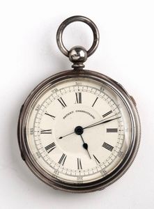 Orologio da tasca vittoriano inglese in argento, cronografo 1/5 centre seconds - [..]