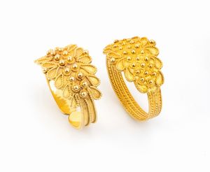 meccanismo a rotazione, corpo in metallo dorato, clips personalizzate dall'aziena Merk con brillanti e pietre [..]