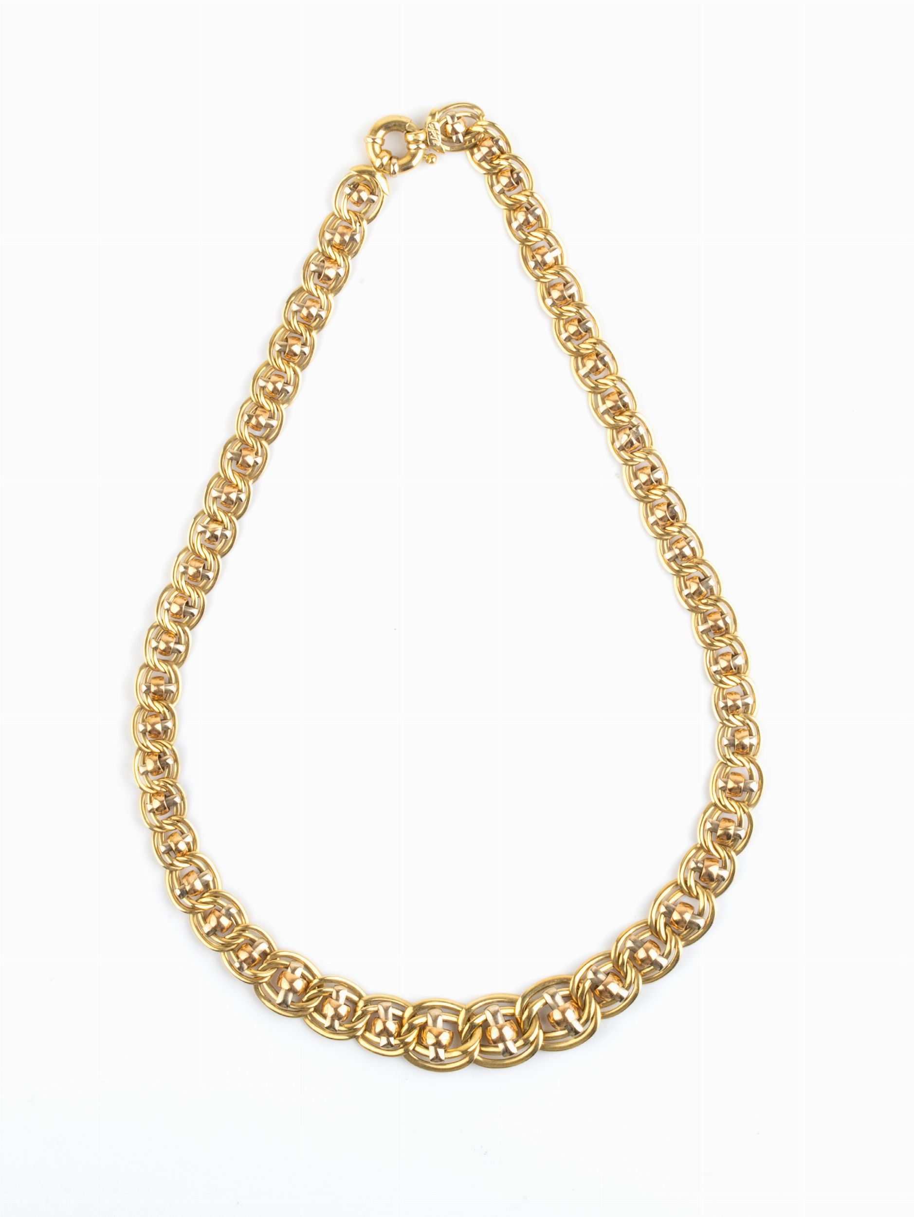 in oro giallo 18k. Chiusura a moschettone.Punzonato 750 - 123 AR - MOD. DEP.. Lunghezza 43,7 cm. Peso 20,9 gr.Stato di conversazione: ***** eccellente.