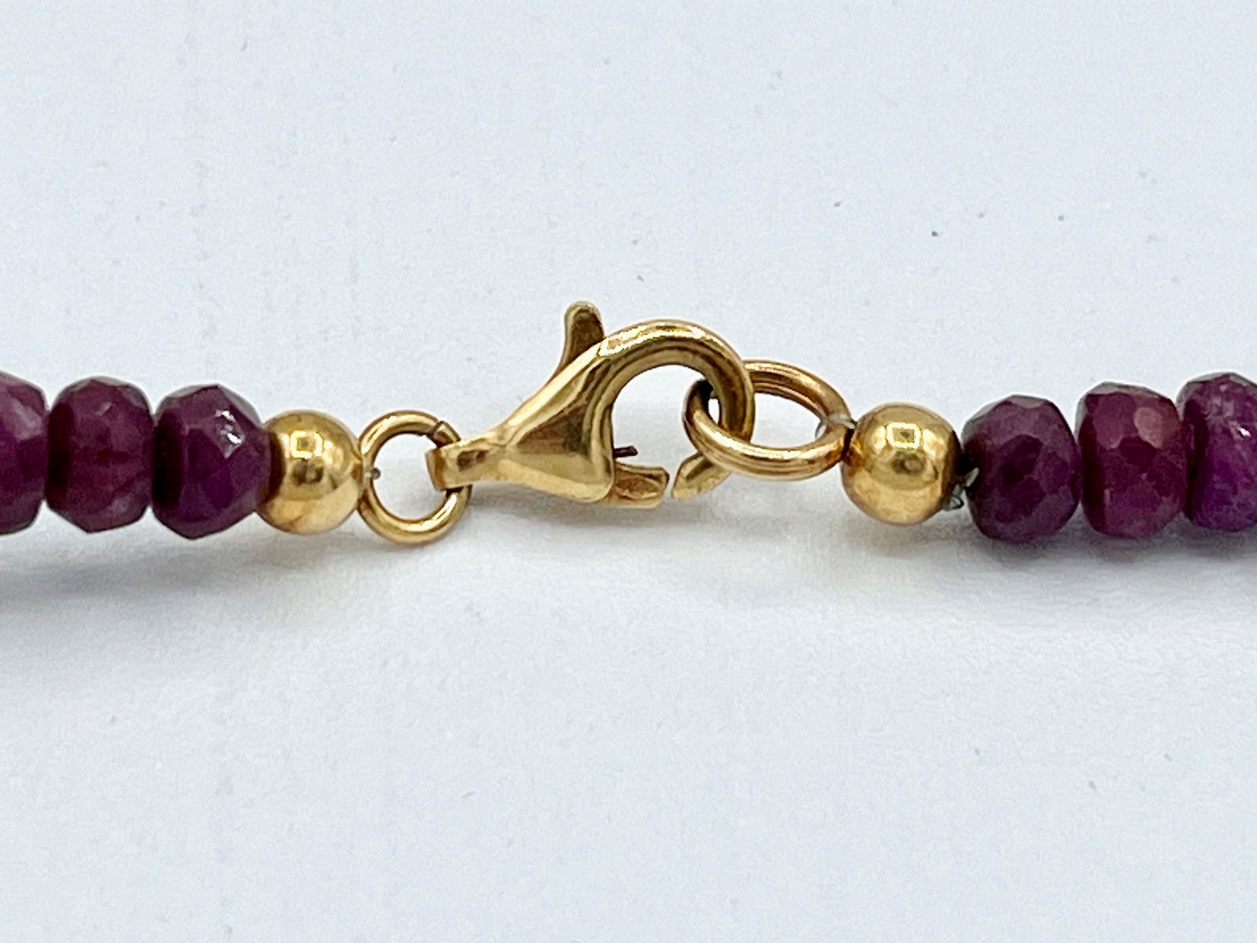 ad un filo di rondelle sfaccettate disposte in gradazione con chiusura in oro.Punzonato 750. Lunghezza 49 cm. Peso 79,1 gr.Stato di conservazione: **** buono.